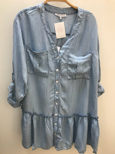 CASUAL BUTTON VNECK RUFFLE DRESS