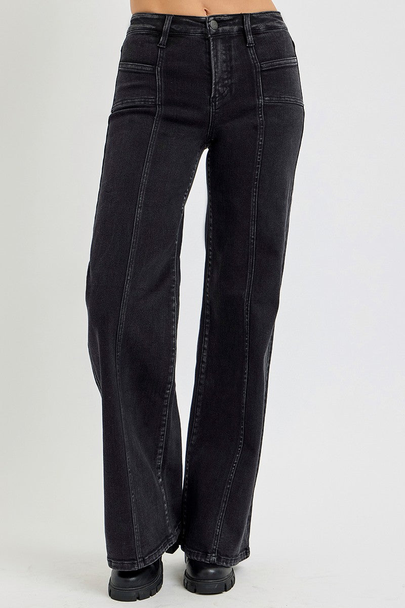 MID RISE WIDE JEANS WITH FRONT PATCH POCKET - Rise 9 3/4" | Inseam 33" in size 3/26 - Model Info: Height 5'8" | Waist 24" | Hips 34" - Model is wearing size 1